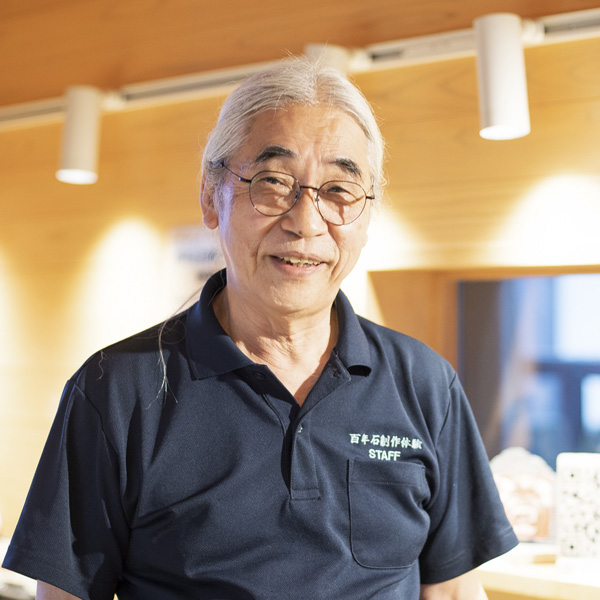 山口:62歳で定年を迎えたとき、妻から「『環境体験アミューズメント※』で職員を募集しているけれどやってみたら?」と勧められたんです。そこではすでに「百年石」を使った展示や体験が行われていました。前職で装具づくりをしていた経験に加えて、若い頃からプラモデル作りが好きでもの作りには自信がありましたから、「自分にもできるかもしれない」と思ったのがきっかけで働くことになったんです。そこでは2013年~2024年まで勤務していましたね。2025年からこの「百年石別邸」で活動しています。